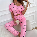 - The set includes a short-sleeve top and matching pants, designed for ease of movement and all-night comfort.
